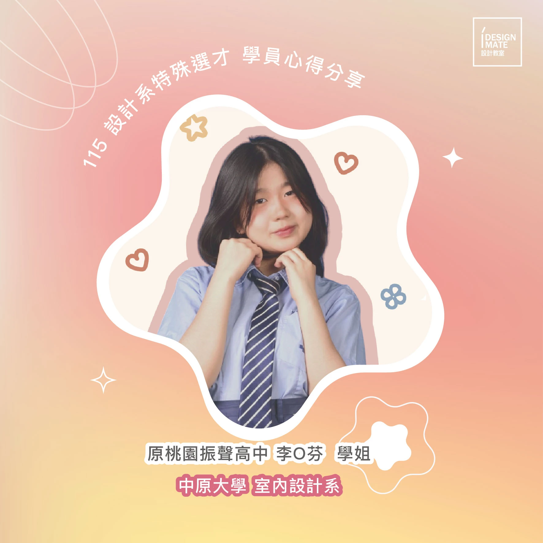 我想與所有準備升學的學弟妹分享:這條路充滿挑戰,會焦慮、會緊張都是正常的。但既然選擇了,就代表我們具備完成它的能力。除了緊抓教室資源精進技法外,我強烈推薦大家要「多看看這個美麗的世界」。設計靈感絕非憑空而來,而是來自於對生活的細膩觀察、對不同文化的吸收,以及對社會議題的思考。務必要抽時間跳脫書桌,用頭腦將各方面的所見所聞進行結合與思考。